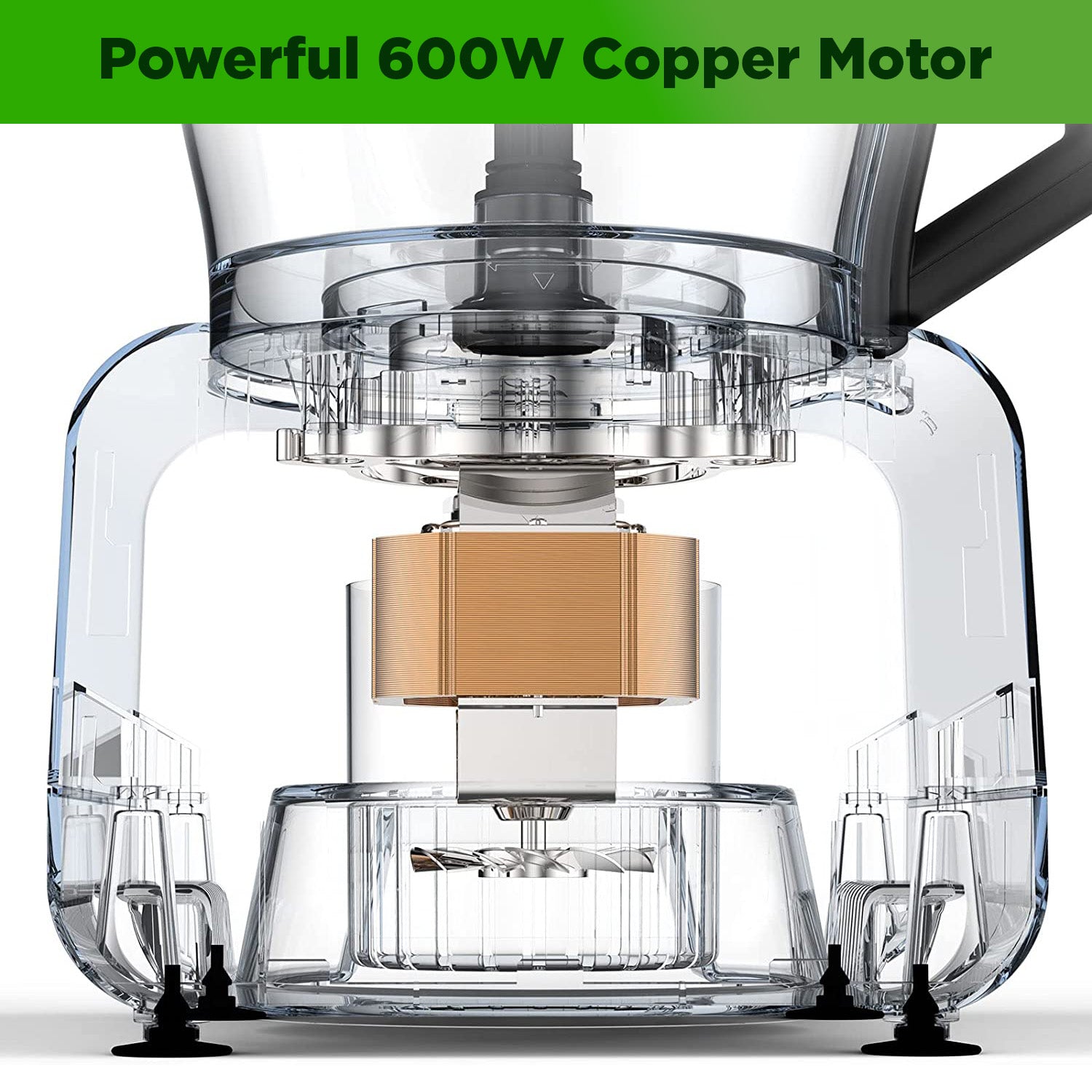 - 600-Watt copper core professional motor. Never want for power again. Bonzachef's restaurant grade motor powers through the thickest foods with ease, producing consistent, even textures.