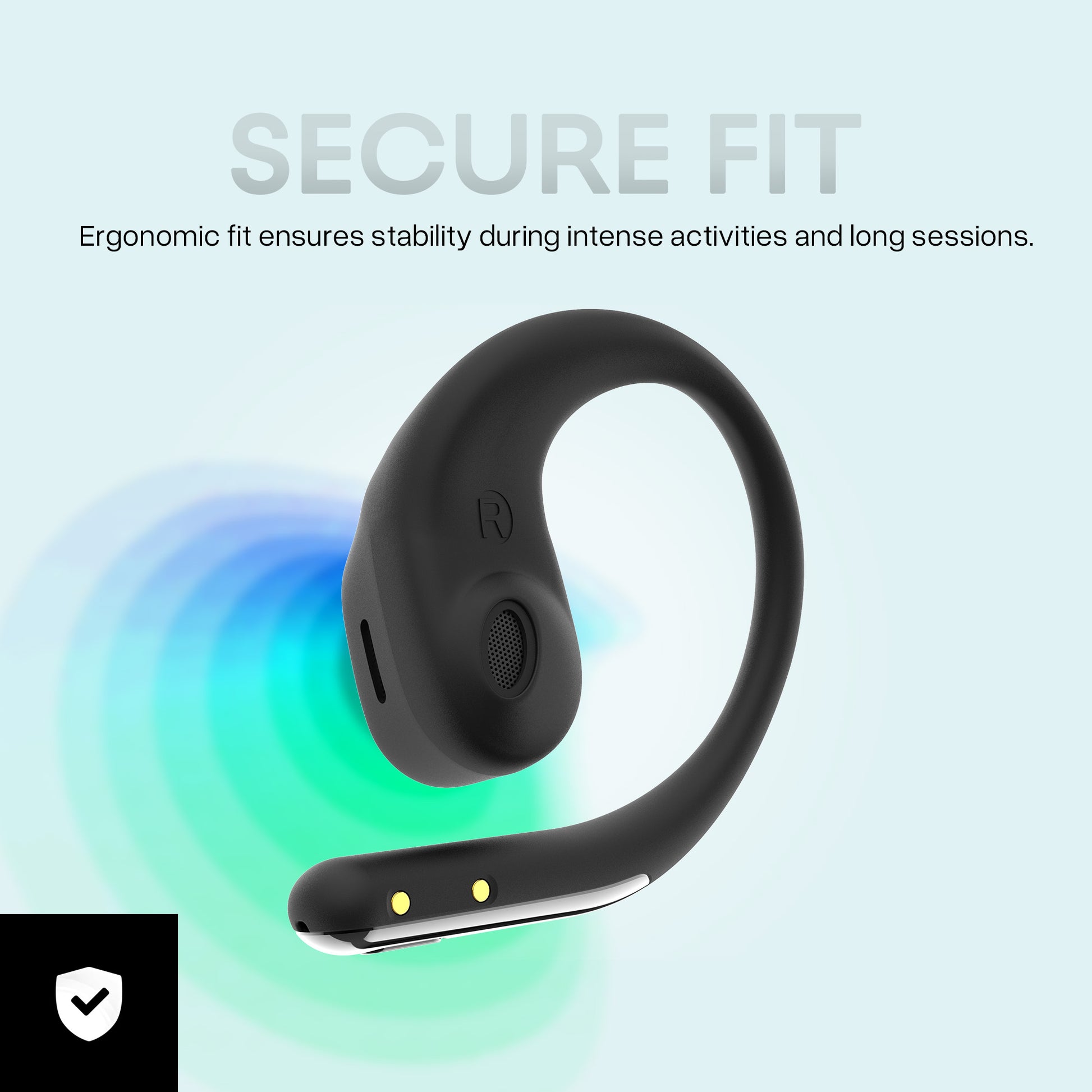 Designed for active movers. Whether at the gym, running a marathon, or on a call, the Open Ear XS remains secure and comfortable. Adaptive ear hooks secure with total comfort for all-day wearability.