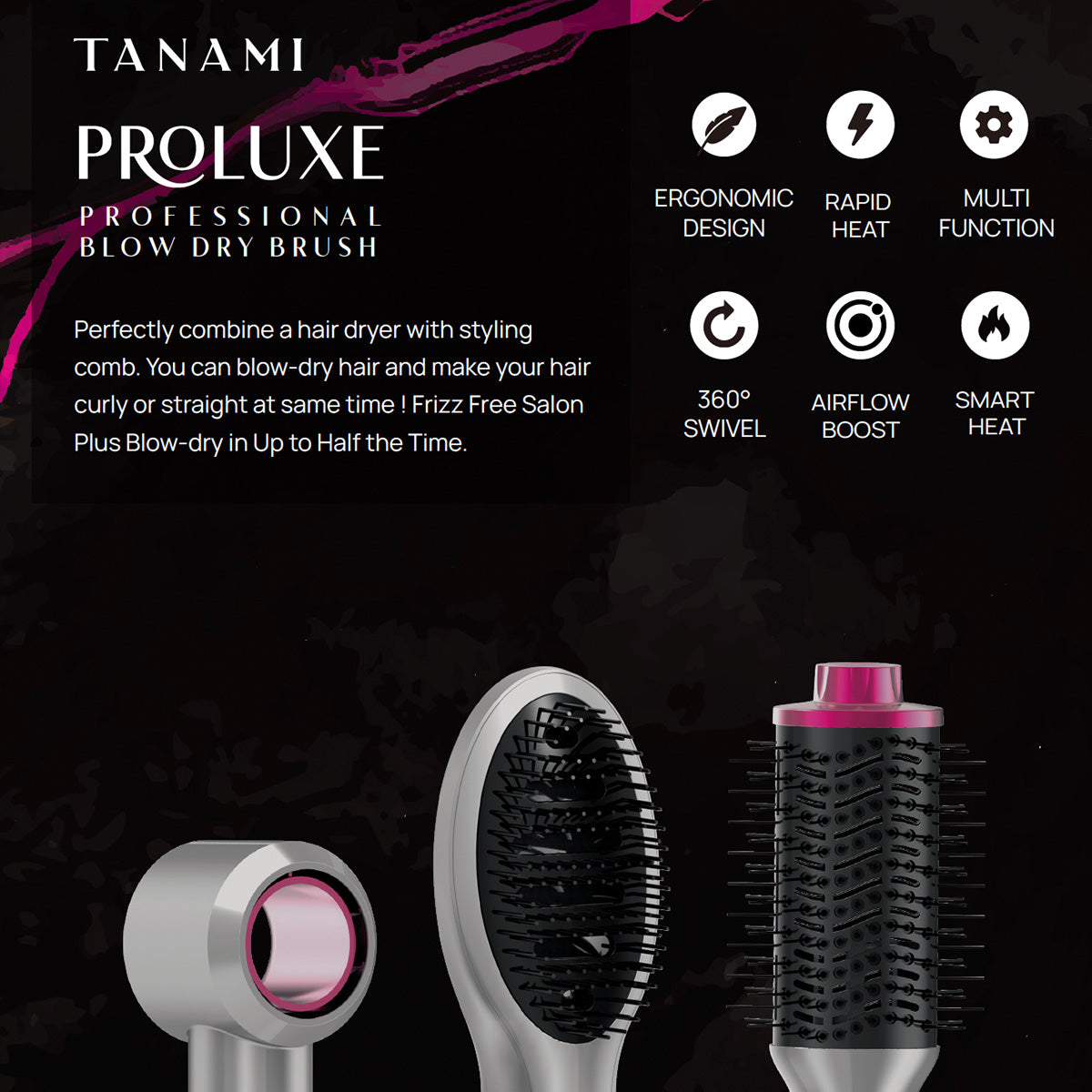 Effortless, salon-quality styling from Tanami. Engineered by salon professionals, the Proluxe Professional blow dry brush incorporates a patent-pending airflow system with precision temperature control, eliminating the risk of accidentally damaging hair. SmartTemp technology locks in your ideal temperature for daily drying and styling.
