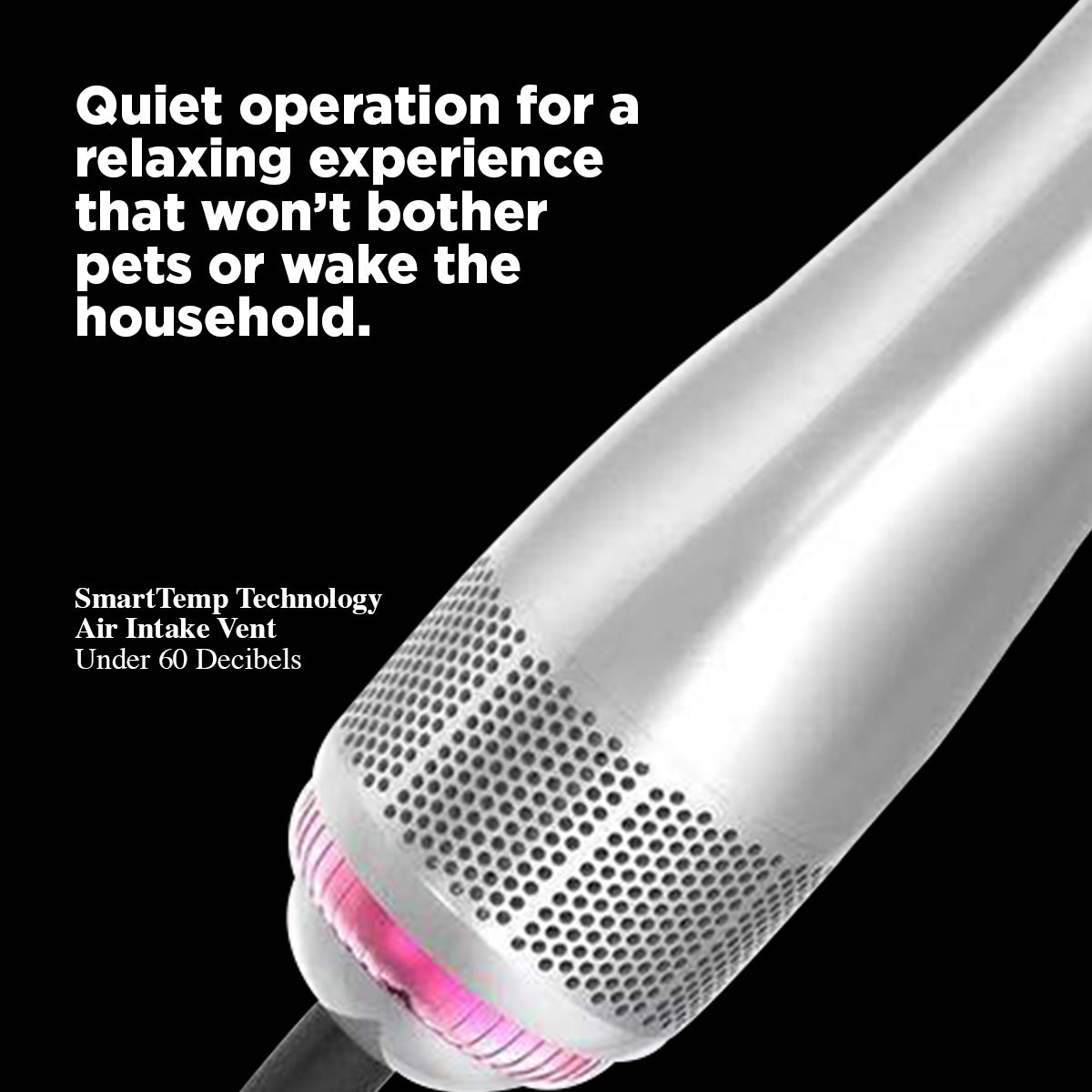 - Quiet operation. Enjoy styling and drying without the noise of traditional blow dry tools. The Proluxe Professional operates at under 60 decibels that won't bother pets or wake the household.