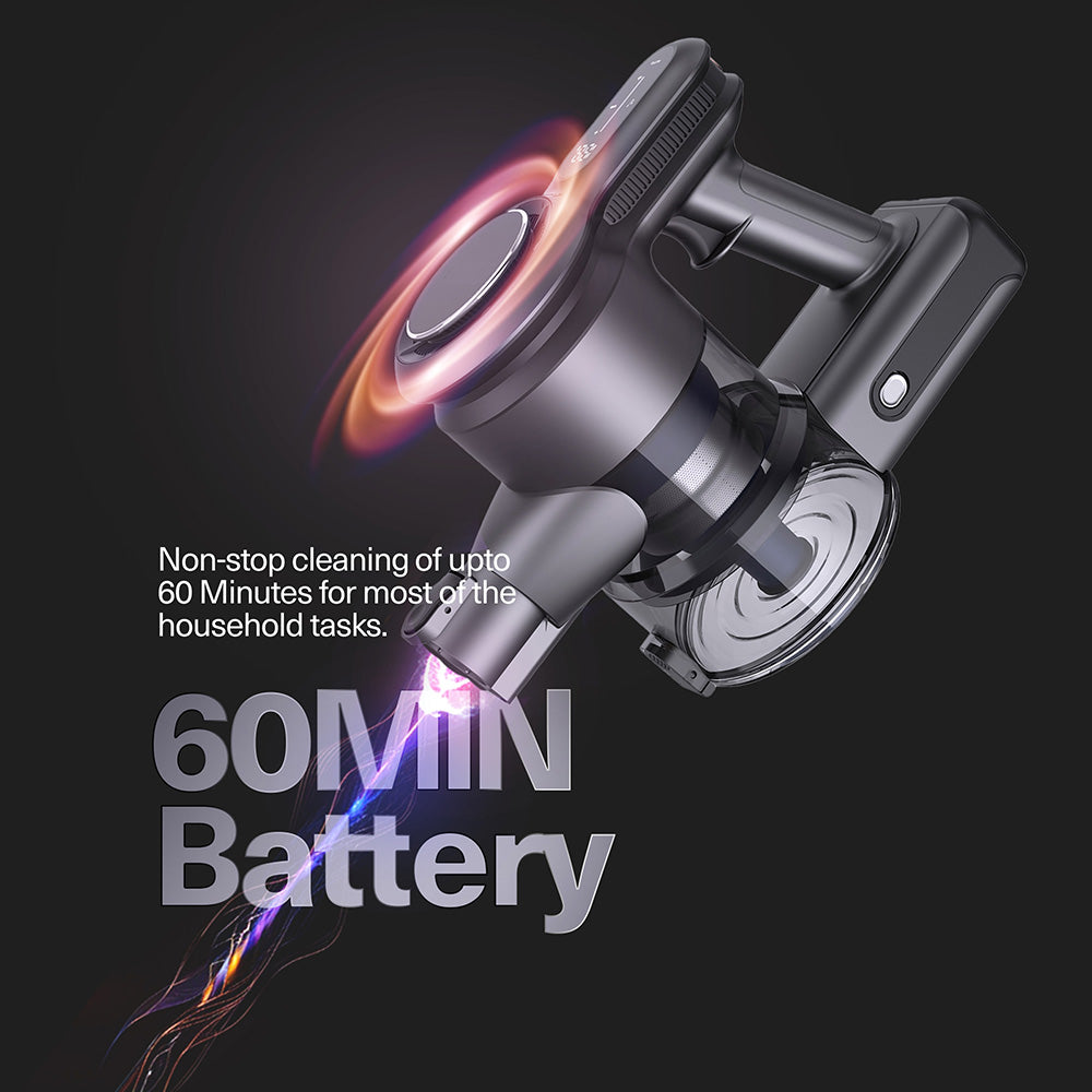 - Long lasting battery. An extra large capacity rechargeable battery offers up to 60 minutes, which ensures thorough cleaning all around the house. The detachable battery can be charged singly or on its main body.
